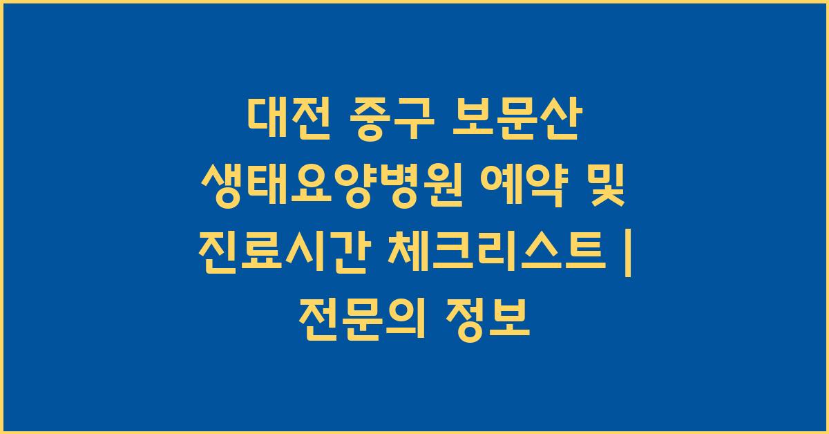 이상으로 대전 중구 보문산 생태요양병원 예약 및 진료시간 안내 | 전문의 정보에 대해 알아보았습니다. 여러분들도 이 정보를 통해 병원 이용에 도움이 되시길 바랍니다!