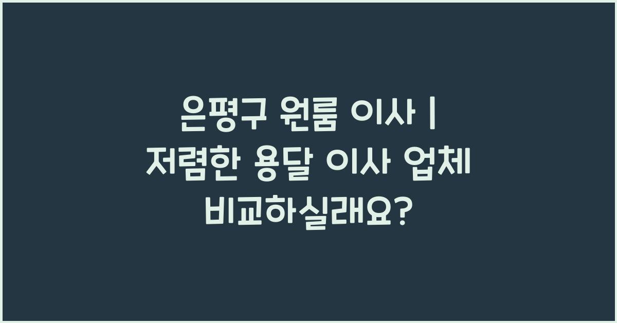 은평구 원룸으로의 이사를 계획하고 계시다면, 어떤 이사 업체를 선택해야 할지 고민이 많을 것입니다. 이사라는 큰 일을 앞두고 여러 고민이 생길 수 있지만, 저렴하면서도 신뢰할 수 있는 용달 이사 업체를 찾아 비교하는 것은 중요하죠. 오늘은 은평구 원룸 이사와 관련해 저렴한 용달 이사 업체를 추천하고 비교해 보겠습니다.