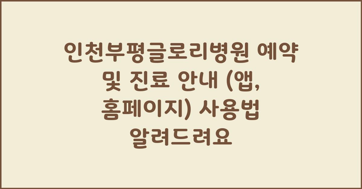 인천부평글로리병원은 여러분의 건강과 행복을 위해 존재하는 곳입니다. 병원 이용이 필요할 때, 정확하고 간편한 예약 시스템이 정말 중요한데요. 병원에 처음 가는 분들은 생소할 수 있지만, 걱정 마세요! 인천부평글로리병원 | 예약 및 진료 안내(앱, 홈페이지) 사용법을 통해 쉽게 예약하고 진료받는 방법을 알려드리겠습니다.