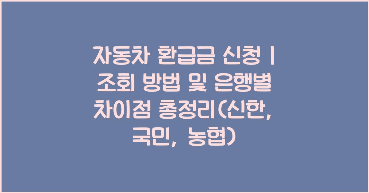 자동차 환급금을 신청하기 위해서는 기본적으로 필요한 서류가 있으며, 이는 신청하는 은행에 따라 약간의 차이가 있을 수 있습니다. 신한은행, 국민은행, 농협 각각의 경우를 다뤄보겠습니다. 자동차 환급금 신청 | 조회 방법 및 은행별 차이점은 무엇인지 알아보겠습니다.