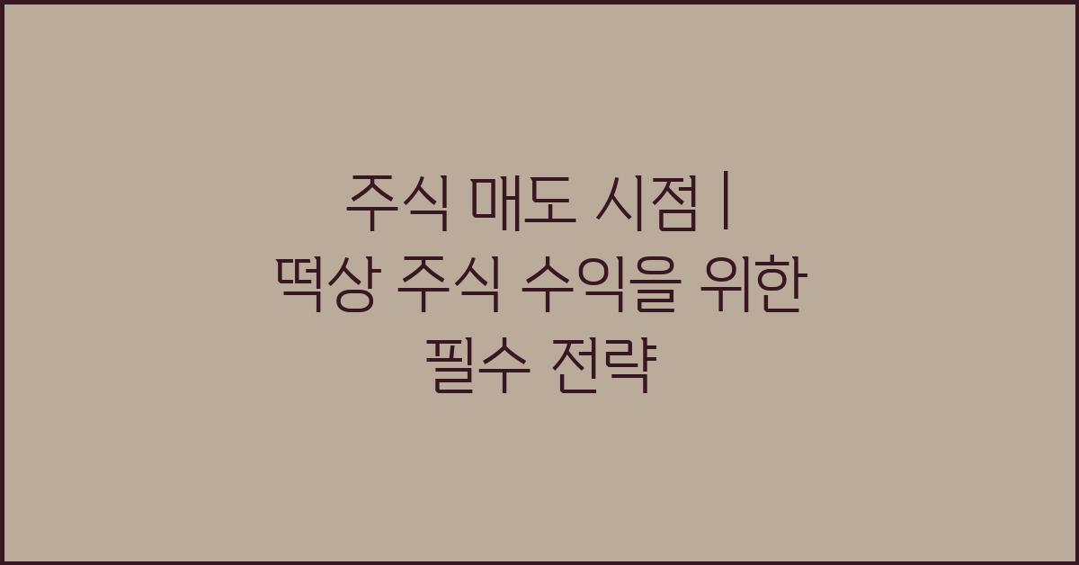 주식 투자는 단순히 사는 것만으로 끝나는 것이 아닙니다. 매도 시점에 대한 전략도 매우 중요합니다. '주식 매도 시점 | 떡상 주식 수익 극대화 전략'을 잘 이해하고 시행하면 더 큰 수익을 올릴 수 있습니다. 내가 처음 주식에 빠졌을 때, 매도 시점을 고민하며 밤새 뒤척인 적이 있었습니다. 그 경험에서 배운 것은 데이터와 자신의 감정을 정확히 조율해야 한다는 것이었습니다.
